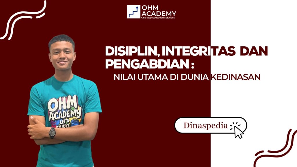 Dinaspedia, OHM Academy- Artikel Dinas Pedia ini mengulas peran strategis disiplin, integritas, dan pengabdian sebagai nilai dasar yang menopang pelaksanaan tugas di dunia kedinasan. Dalam ranah pemerintahan dan pelayanan kepada masyarakat, ketiga prinsip tersebut berfungsi sebagai landasan etika dan profesionalisme yang membentuk sikap serta perilaku aparatur negara dalam melaksanakan kewajibannya. Dengan memahami dan mengimplementasikan nilai-nilai tersebut secara konsisten, diharapkan terwujud penyelenggaraan pemerintahan yang menjunjung tinggi kejujuran, berfokus pada kepentingan publik, serta mampu merespons kebutuhan masyarakat secara adil dan berkesinambungan.