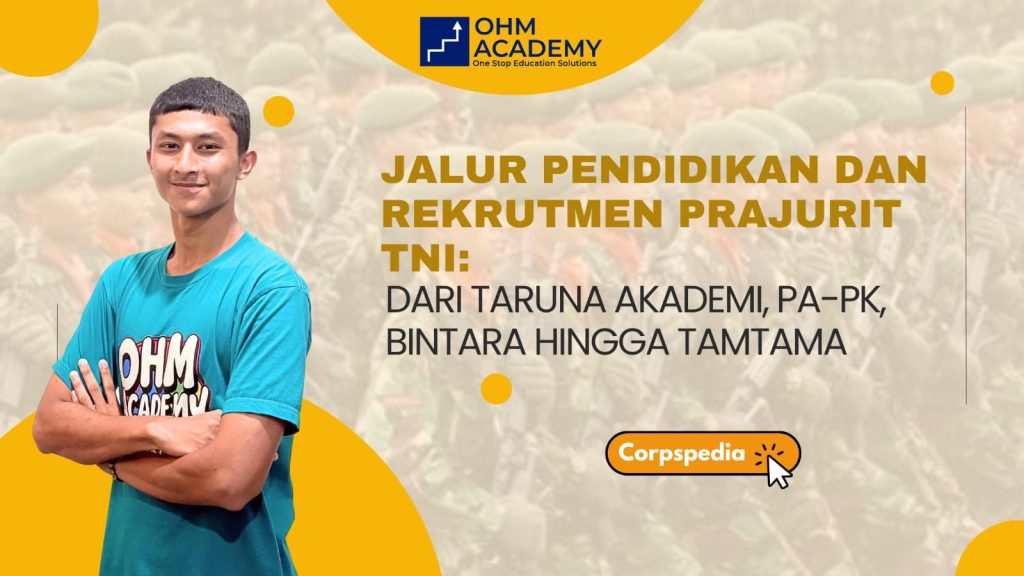 Corpspedia, OHM Academy- Dalam artikel Corpspedia ini, kami mengkaji secara mendalam berbagai jalur rekrutmen TNI dan artikel ini sangat sesuai bagi kamu yang berminat menjadi prajurit TNI dapat memperoleh gambaran lengkap mengenai berbagai jalur pendaftaran yang tersedia, mulai dari pendidikan Taruna Akademi TNI, Perwira Prajurit Karier (PA-PK), Perwira Prajurit Sukarela Dinas Pendek (Pa-PSDP), hingga jenjang Bintara dan Tamtama, sebagai bekal awal dalam menentukan pilihan dan mempersiapkan diri mengikuti seleksi.